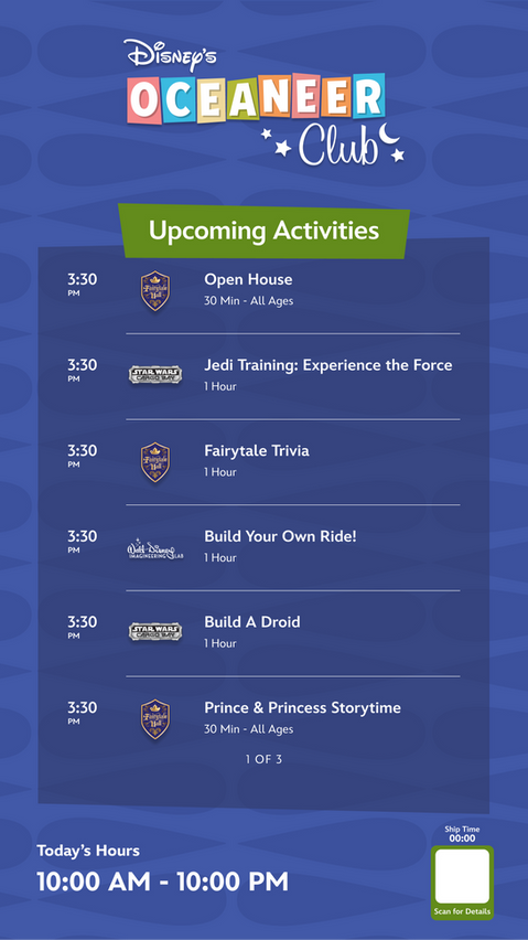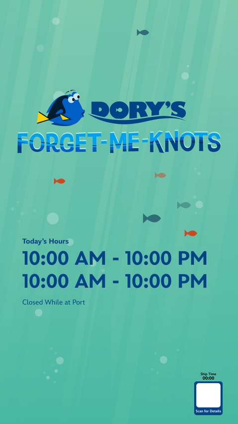 For the Disney Dream, Fantasy, Magic, and Wonder, I was not provided with style guides from Imagineering. While the ship was docked at Port Canaveral, Florida, it was my duty to organize a tour of the ship, take photographs, and observe environmental elements that I wanted to incorporate into the digital signage design.